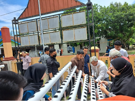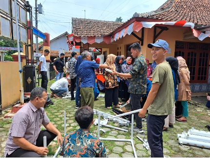 After giving the material by the resource person, all P3M participants carried out aquaponics assembling practice activities. All participants were assisted by resource persons, community leaders, the service team and HMPSDPWK to assemble the aquaponics equipment provided by the P3M service team. The work is done by dividing the participants into 2 groups, each group is accompanied by a facilitator. After completing the assembly, proceed to seeding the seeds, the method is to cut the rockwool, wet the rockwool and plant the seeds. And put the fish in the aquaponics tub. A series of practices have been completed and continued with the closing and symbolic handover of aquaponics to the Tanjung Kulon Village Head.