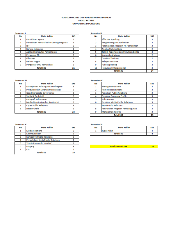 Unduh Kurikulum 2020 D3 Humas PSDKU